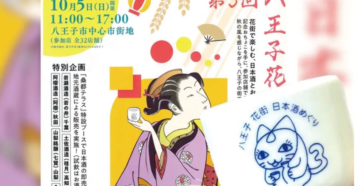 「第3回 八王子花街日本酒めぐり」は、八王子中心市街地の飲食店を舞台に、記念おちょこ(1個1,000円)を片手に日本酒とおつまみを楽しむ街歩きイベントです。各店舗では、日本酒とオリジナルおつまみを組み合わせた「ちょい呑みセット」(税込1,000円 or 2,000円)をご用意。おちょこを持っていれば、順番や件数に関係なく自由に店舗を巡って味わえます。さらに、会場の「桑都テラス」では特設ブースを設け、岩瀬酒造(千葉)、土佐酒造(高知)、本田商店(兵庫)、阿櫻酒造(秋田)、山梨銘醸(山梨)など全国の銘酒を販売。八王子芸者衆による演舞も予定され、文化と食が融合した特別な一日をお楽しみいただけます。秋の風を感じながら、花街情緒あふれる八王子で日本酒を堪能してみませんか。
