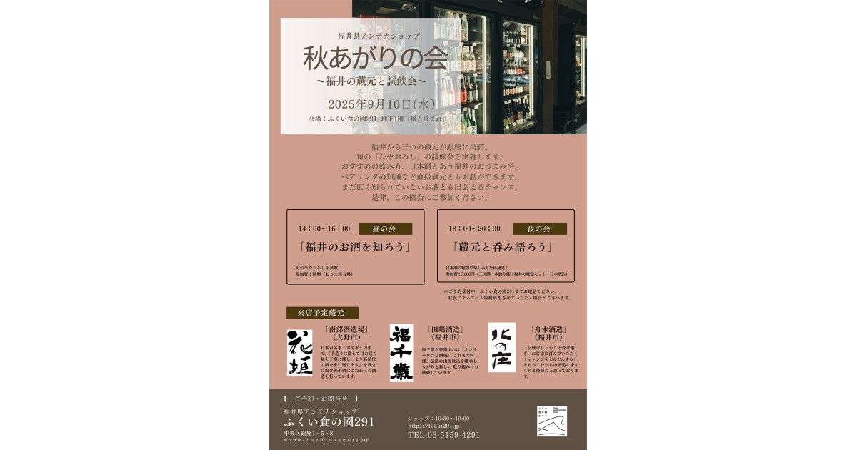 福井から三つの蔵元が銀座に集結。旬の「ひやおろし」の試飲会を実施します。